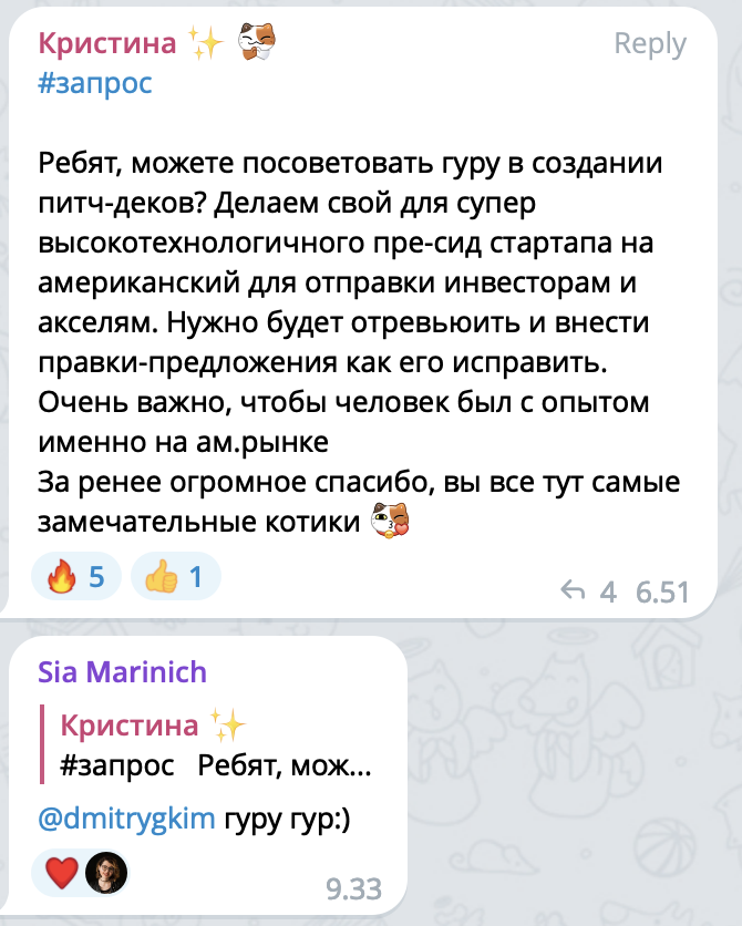 Благодарность @dmitrygkim за помощь с вопросами биздева и продаж ❤️